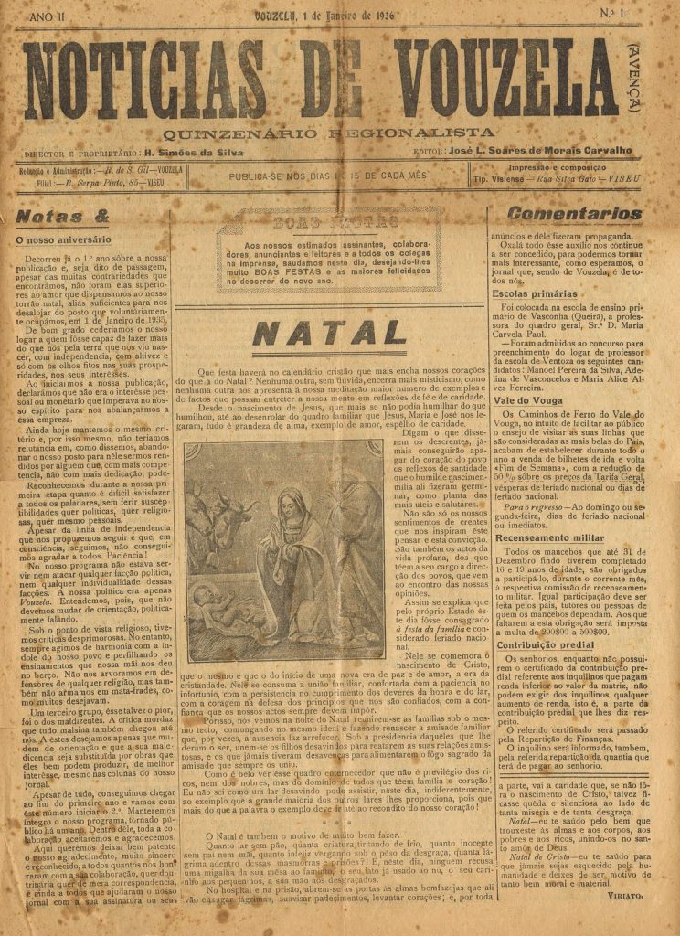 Chovia a cântaros quando saiu para as bancas a edição de 1 de Janeiro de 1936, comemorativa do primeiro aniversário do “Notícias de Vouzela”. Numa primeira página a três colunas, dominada por um artigo sobre o Natal assinado por Viriato, o director da altura, Horácio Simões da Silva, ocupava toda a coluna do lado esquerdo para referir os obstáculos que o então quinzenário teve que ultrapassar. “Reconhecemos durante a nossa primeira etapa quanto é difícil satisfazer a todos os paladares, sem ferir susceptibilidades quer políticas, quer religiosas, quer mesmo pessoais”. Era o início da caminhada do periódico que sucedeu ao anterior “Correio de Vouzela” e que acabou por se tornar no principal guardião da memória do que por aqui houve nos últimos 75 anos.